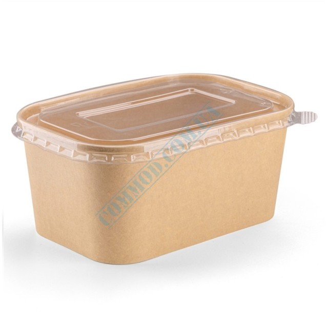 Контейнеры бумажные крафт прямоугольные с прозрачной крышкой.