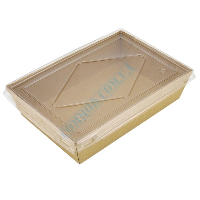 Контейнеры бумажные крафт прямоугольные для холодных и горячих блюд с прозрачной крышкой.