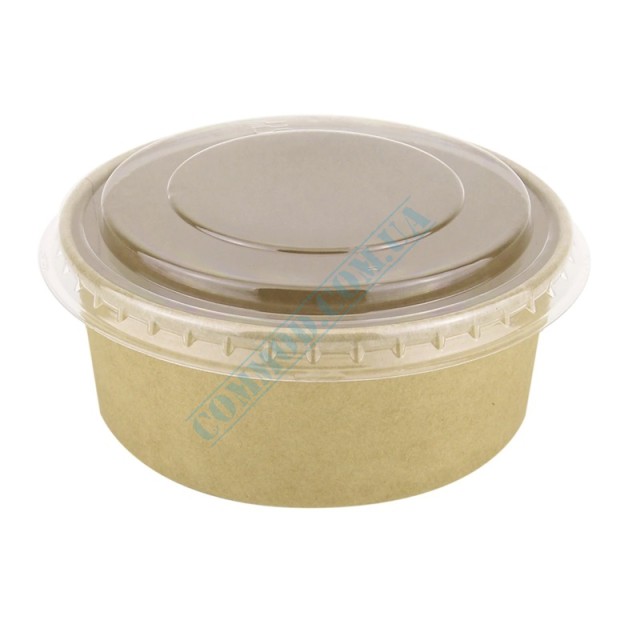 Контейнеры бумажные крафт круглые с прозрачной крышкой.