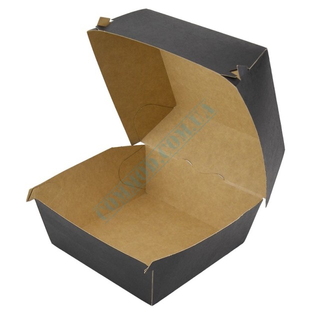 Коробка для бургера 114x114x90мм черная-крафт 90 штук, упаковки, коробка, коробки, для, гамбургеров, бургера, бургеров, чизбургера, чизбургеров, фаст фуд, фаст фуда