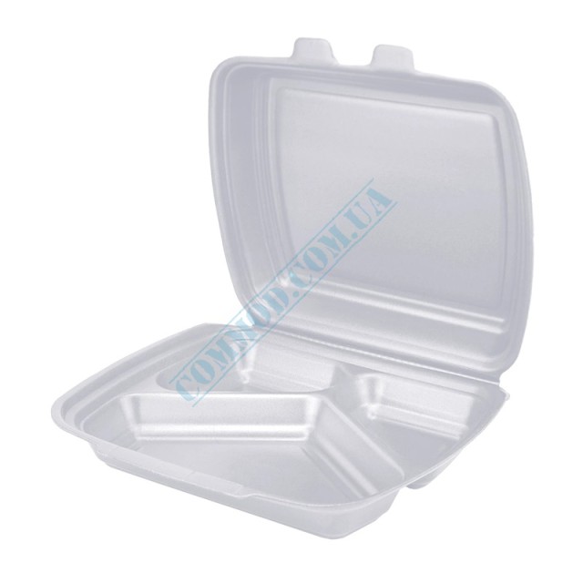 Ланч бокс 250x210x70мм белый 3 секции 125 штук, ланч боксы, емкость, емкости, контейнер, контейнеры, для, доставки, обеда, обедов, горячего, горячих