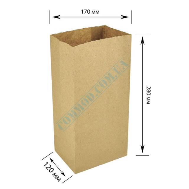 Пакет бумажный крафт с прямоугольным дном 170x120x280мм (91) 200 штук, артикул 91, пакет, бумажный, с плоским дном, для, продуктов, хлеба, на вынос, крафтовый, крафтовые