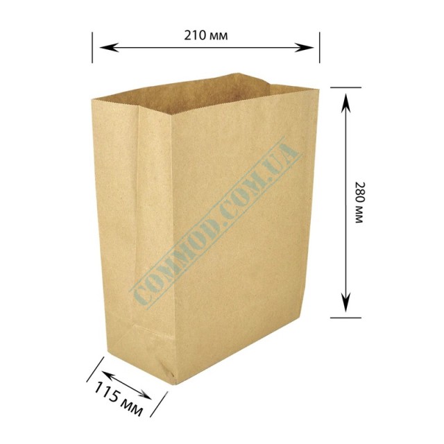 Пакет бумажный крафт с прямоугольным дном 210x115x280мм (298) 200 штук, артикул 298, пакет, бумажный, с плоским дном, для, продуктов, хлеба, на вынос, крафтовый, крафтовые