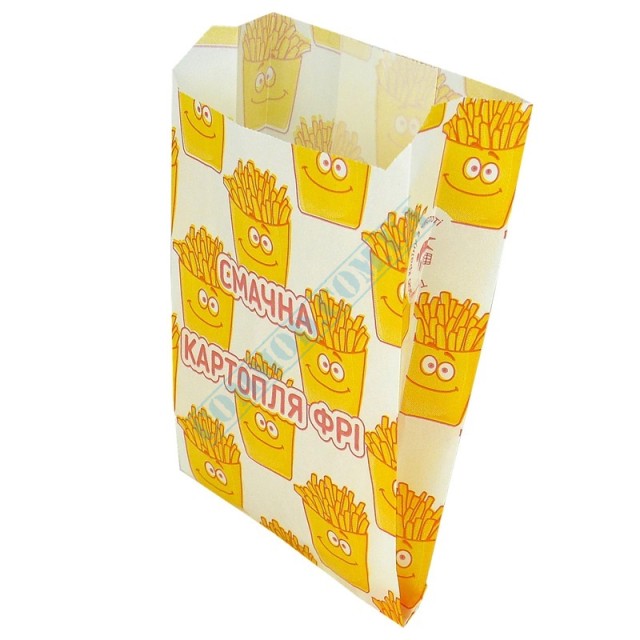 Пакеты бумажные для картошки фри 160x100x50мм Смачна картопля (256) 1000 штук, артикул 256, пакет, упаковка, для, картофеля, фри, фаст фуд, фаст фуда
