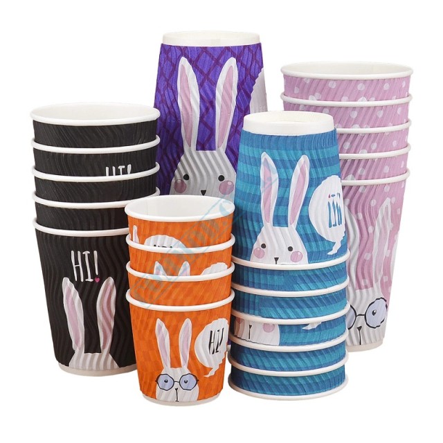 Стакан бумажный 175мл гофрированный Зайцы 20 штук, стакан, бумажный, картонный, картонные, гофрированный, гофростакан, гофростаканы, гофро, одноразовый, одноразовые, с, печатью, рисунком