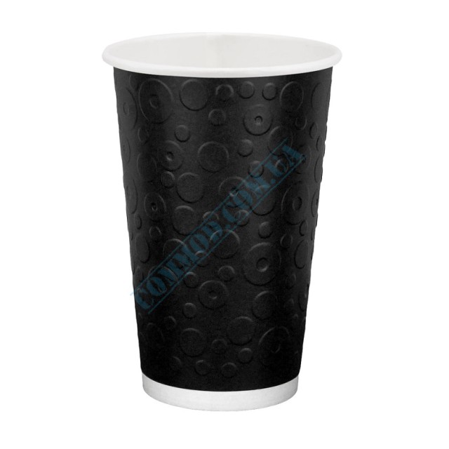 Стакан бумажный 500мл двухслойный с тиснением черный 20 штук, стакан, бумажный, картонный, картонные, двухслойный, одноразовый, одноразовые, черный, рельефный, рельефные