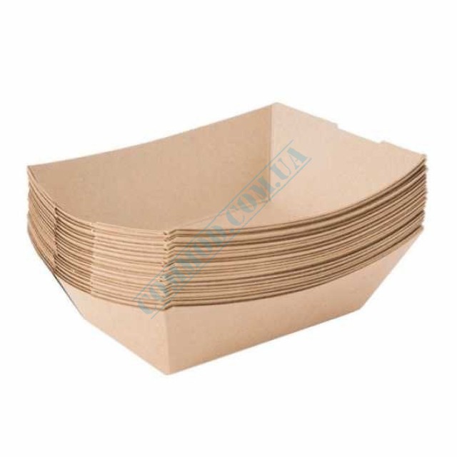 тарелки-лодочки картонные крафт 13x20x4см без ламинации 100 штук, тарелка, лодочка, картонная, картонные