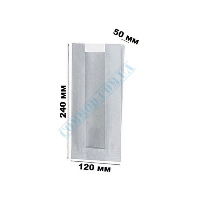 Пакеты бумажные с окном белые 240x120x50мм (56) 1000 штук, артикул 56, пакет, бумажный, белый, с, окном, для, продуктов, хлеба, выпечки