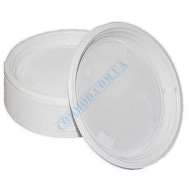 Тарелки круглые пластиковые белые.